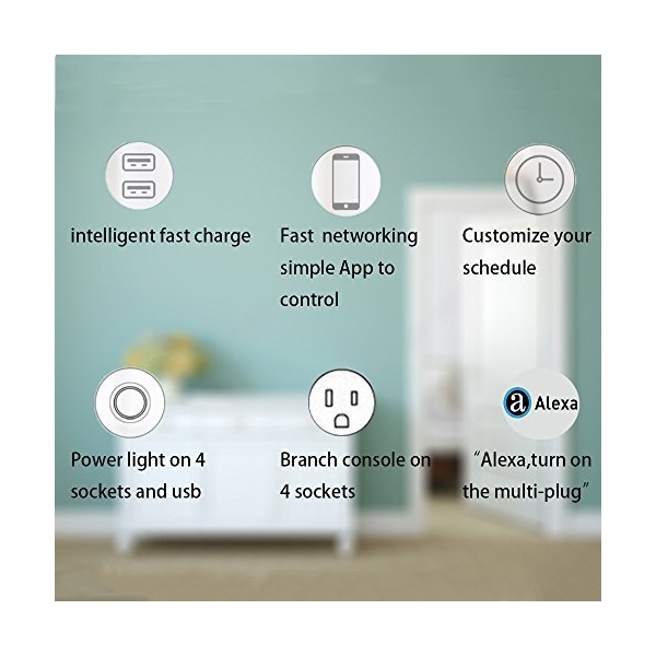 *Power strip surge protector wall mount Support four simultaneous digital equipment supply. Intelligent USB Power: 2 USB Super Charging Ports with a MAX power output of 40W which can detect your devices and deliver the ideal charging speed up to 2.1 amps per port.Its built-in 5 Ft
